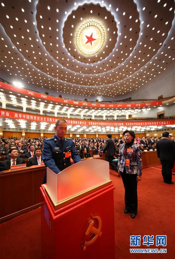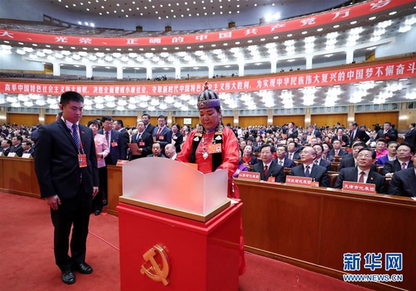 10月24日,中國共產(chǎn)黨第十九次全國代表大會閉幕會在北京人民大會堂舉行。這是代表投票選舉中央委員會委員、候補委員和中央紀(jì)律檢查委員會委員。新華社記者 馬占成 攝